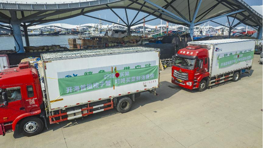 8月1日中午12点,江苏吕四港千帆竞发,不久,一筐筐鲜活梭子蟹就已到达就近的港口。经过进一步的品质检测、挑选和暂养,随后再通过全程冷链,最快6个小时,“开海第一网”梭子蟹就被运送至上海。很快,全国的用户就能在叮咚买菜购买到张牙舞爪的鲜活梭子蟹了。