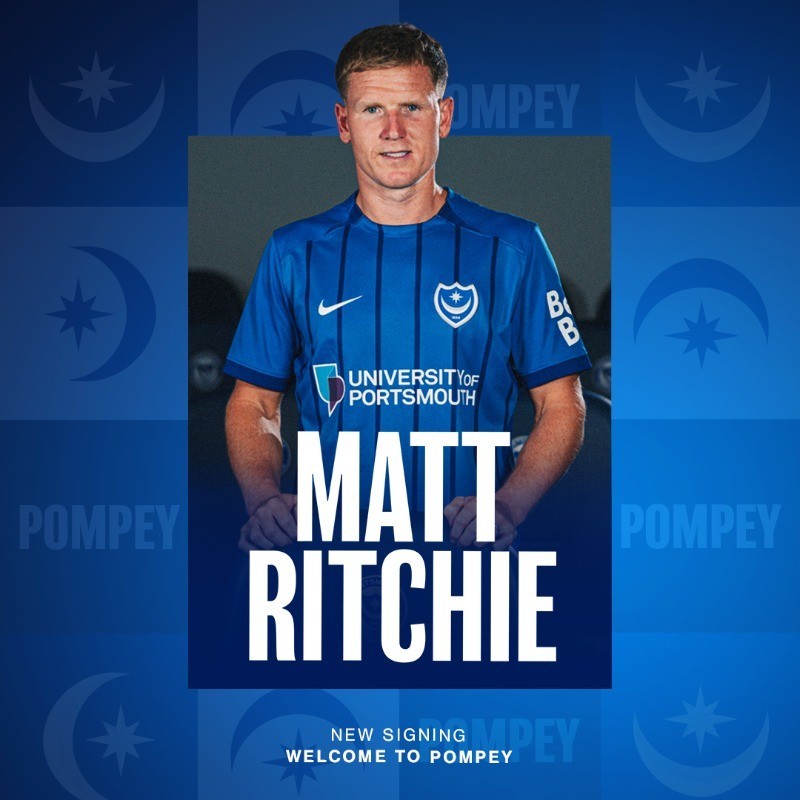 官方消息,34岁前纽卡中场里奇回归英冠朴茨茅斯,双方签约2年。