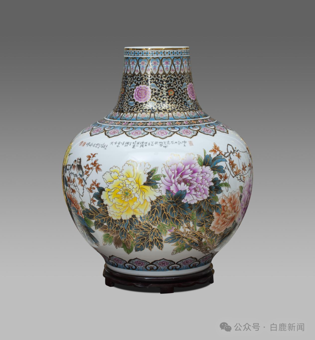 当然,大胆是胸藏文墨,腹有诗书。1986年他的《釉上堆金花鸟天球瓶》获国际莱比锡博览会金奖,这也奠定他在工艺界的地位。