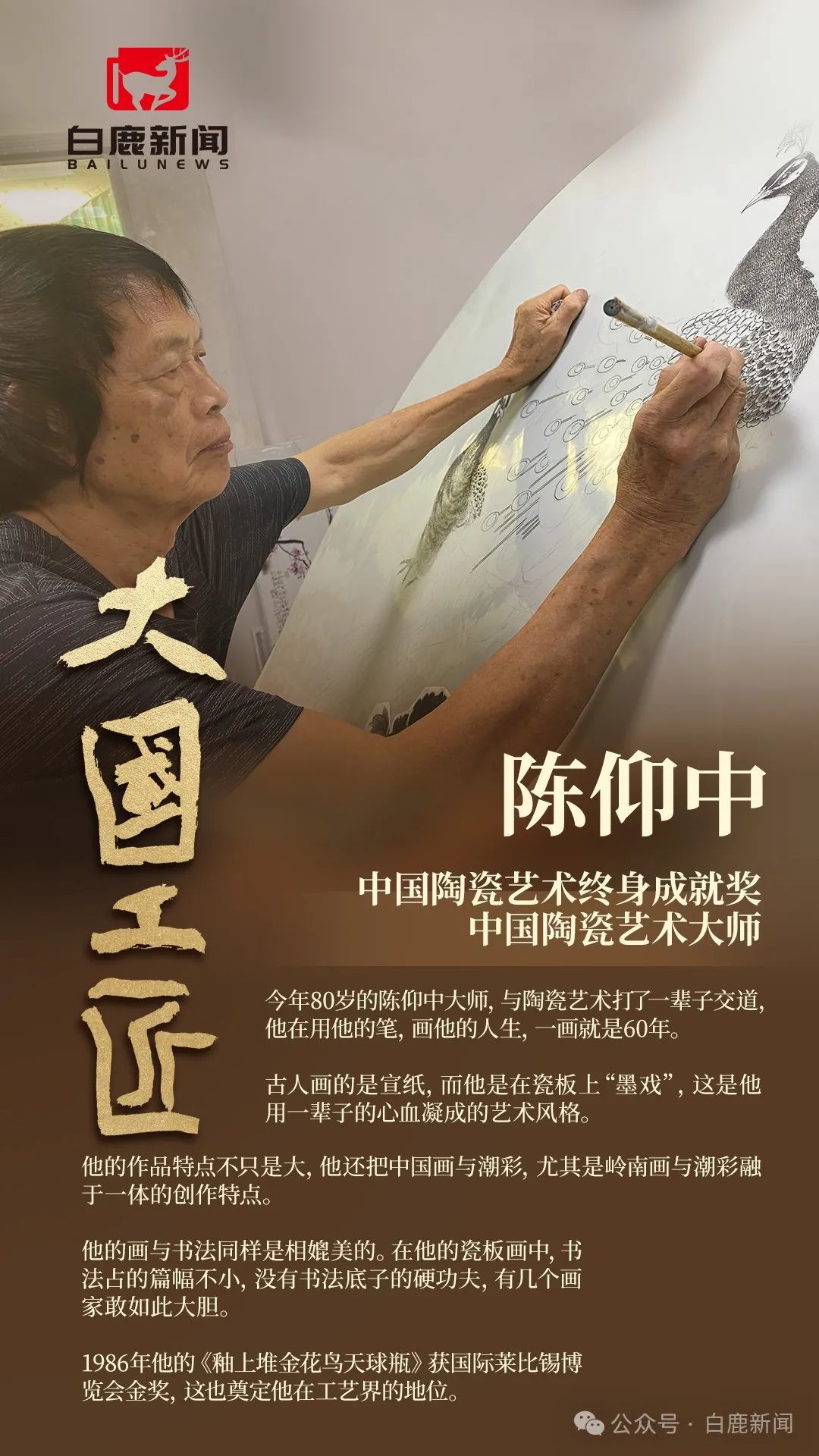 陈仰中大师今年80岁,可以说他与陶瓷艺术打了一辈子交道,他在用他的笔,画他的人生,一画就是60年了。