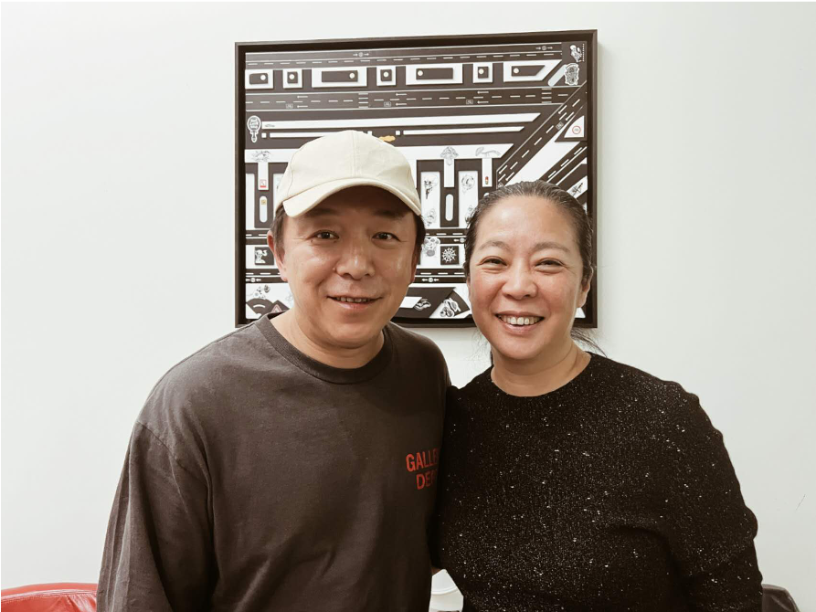 ▲艺术家安晓彤(右)与凤凰中心馆长、凤凰艺术总编辑肖戈