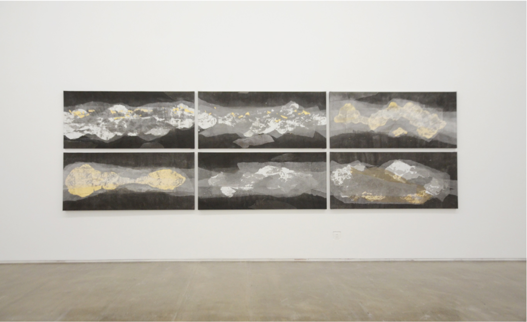 在这组景观中,安晓彤使用了非传统水墨的创作手法,采用不同水墨深浅色质的纸张进行多层次的拼贴。在拼贴的过程中,中国传统山水制式的图景逐渐浮现其中。在不知情的情况下,观众很难发现其中的端倪,但如果凑近了作品仔细观察,则可以发现那些被重叠的隐藏的画面。其作品展现了作品与观者之间的多缘关系,比艺术家直白的观念呈现更有趣。