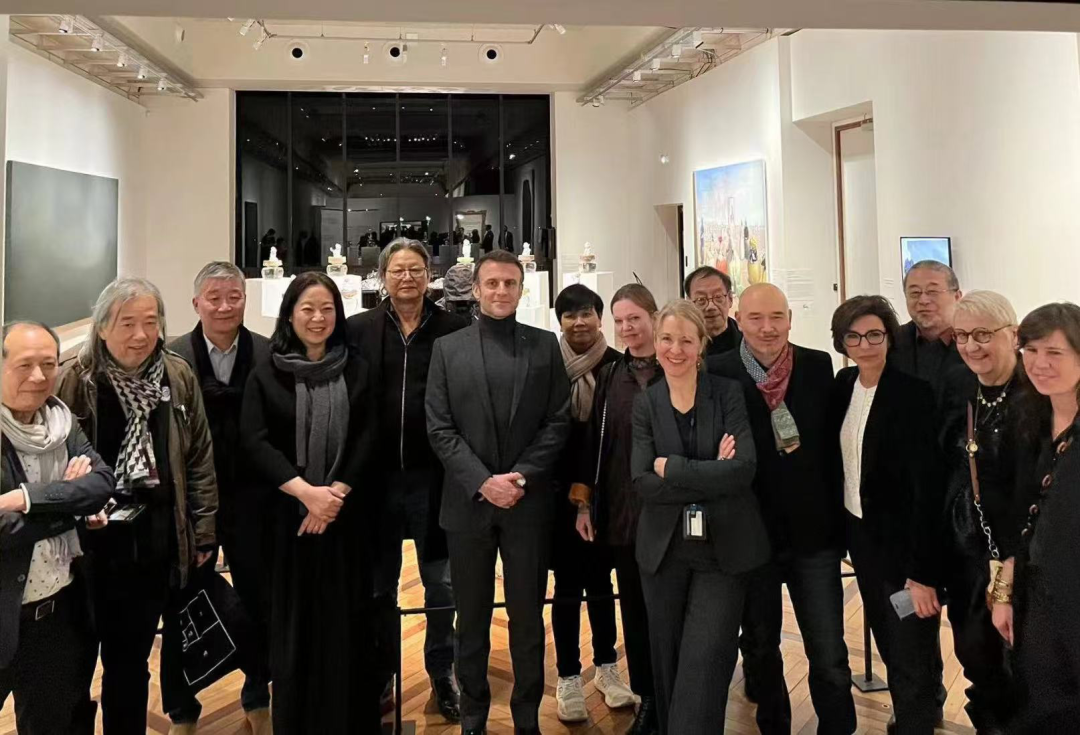 ▲巴黎华人艺术家们与法国总统马克龙和文化部长