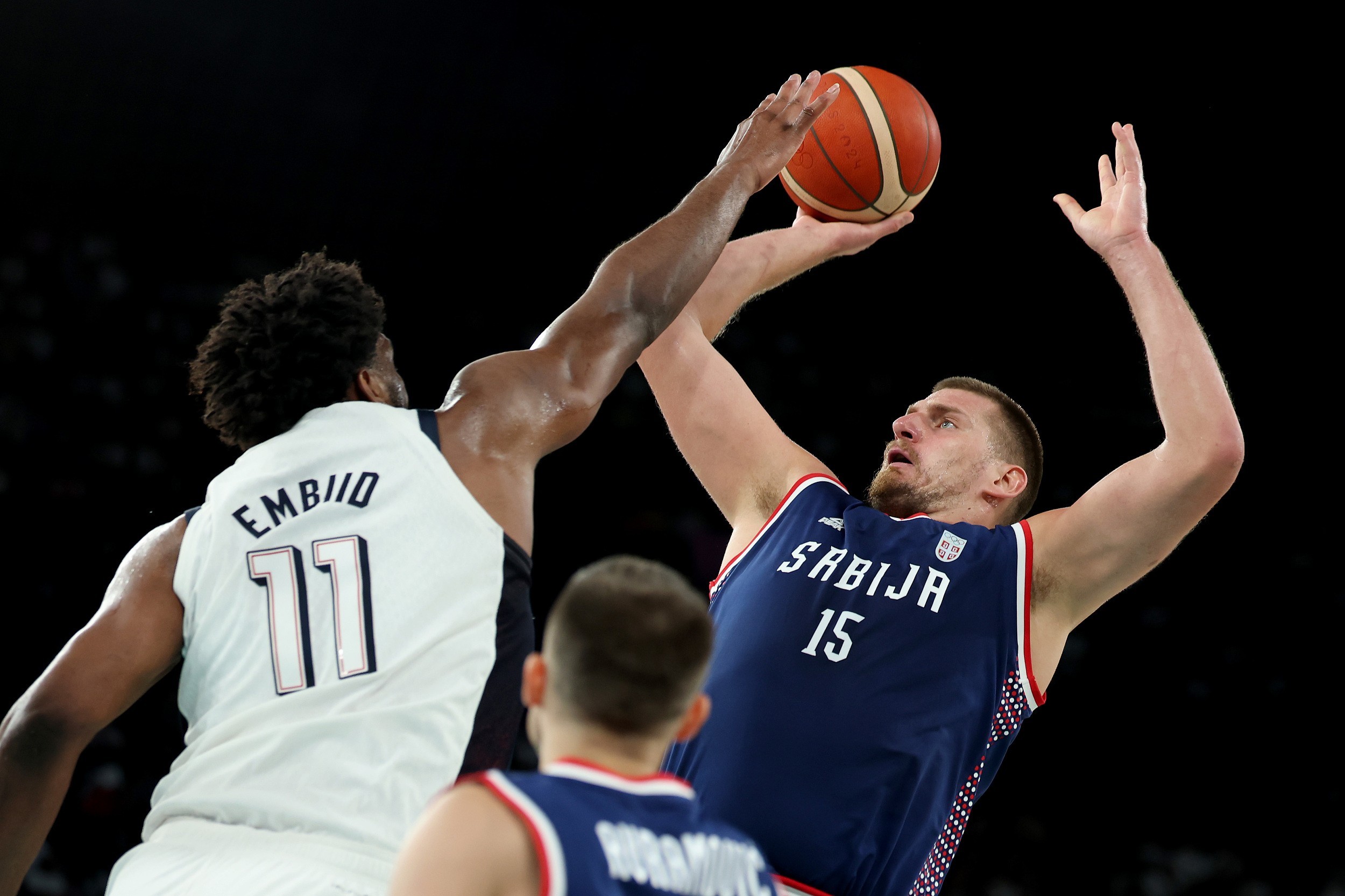 上半场比赛,塞尔维亚以54-43领先美国11分。
