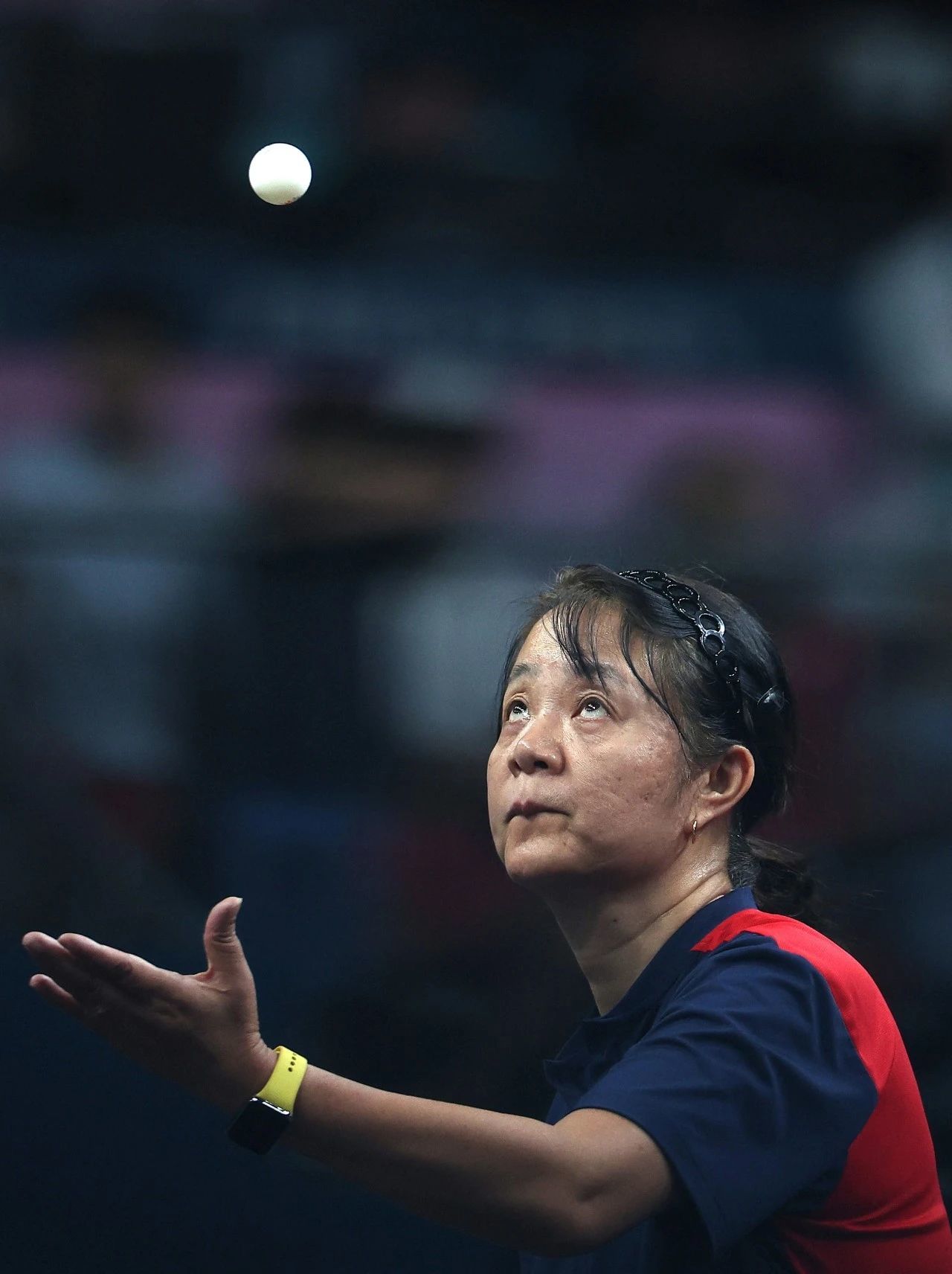 球拍被收走后,曾志英在休息室里等候比赛,先是坐下,没过两分钟就站了起来。站了不到一分钟,觉得腿酸,又坐了下来。她就像是一个即将迎来人生大考的学生,紧张得坐立不安。