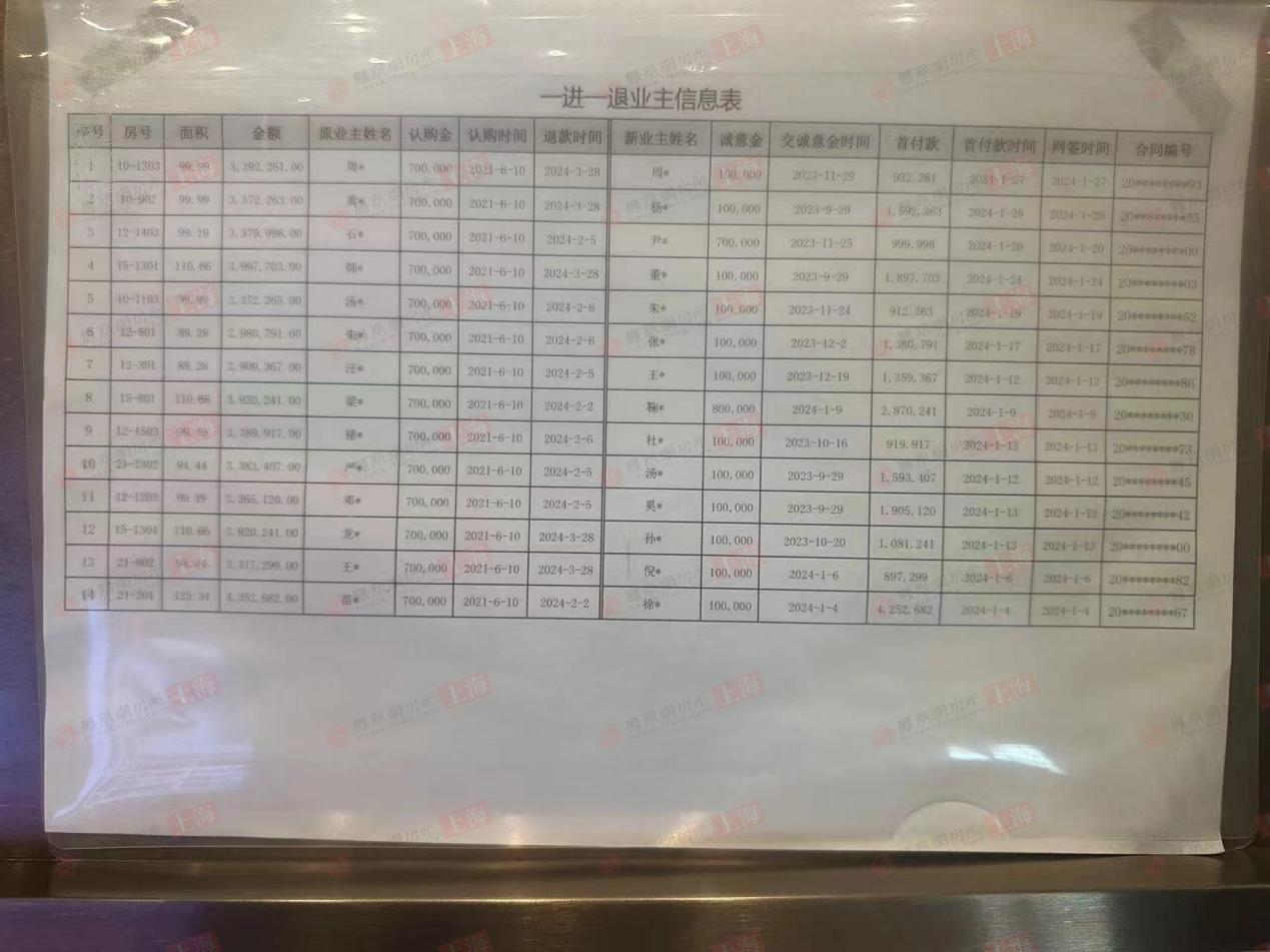 售楼处张贴的退房清单显示,目前已有不少业主成功抽身,君御公馆也算是 “沪上集中退房第一盘”。