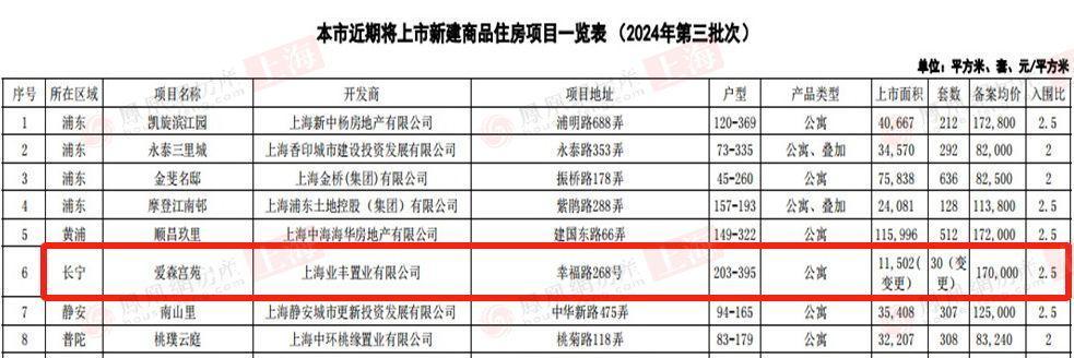 7月9日,松江九亭洋江唐顿公馆官宣过会,距离其上一次开盘已过去2年半之久;今年3月,长宁区夏都·幸福268过会(又名“华山夏都苑”二期,本期备案名“爱森宫苑”),项目第一次开盘已是18年前,本次入市面积和套数都做了变更。目前这两个楼盘都尚未取证认购。