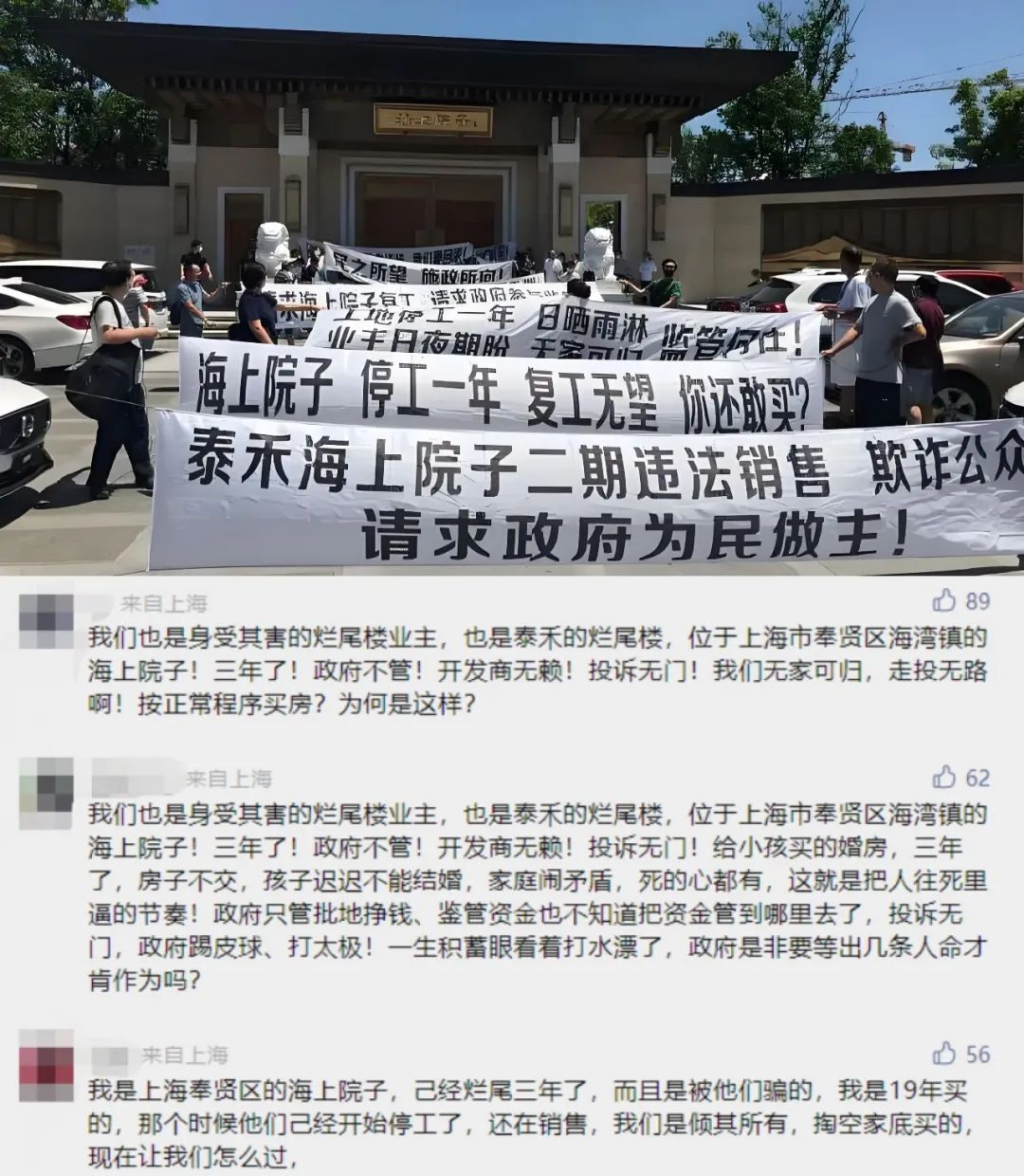 经过长达3年的停工,项目终于在去年重现生机。据泰禾集团官微,“2023年4月27日,在奉贤区政府保交付专班指导下,在上海建工五建集团和金融机构各方支持下,上海海上院子项目正式复工。”