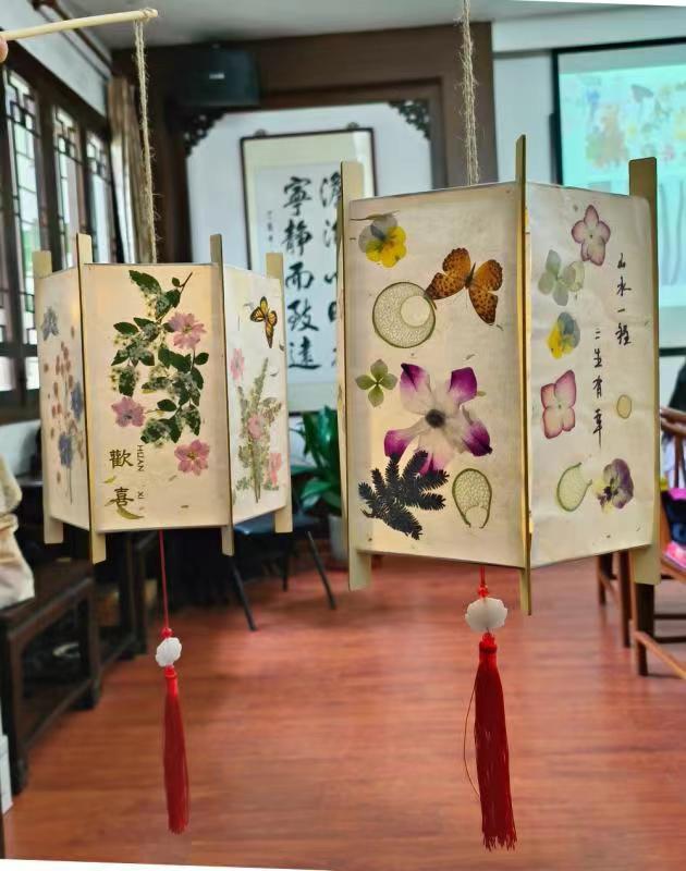 花灯又叫”彩灯“,相传起源于汉代,兴于唐宋,至今已有二千多年的历史,是中华民族优秀的文化遗产。压花是利用物理和化学方法,将植物材料经脱水、保色、压制和干燥等科学处理而成平面花材的过程。植物的根、茎、叶、花、果实通过压制、干燥后可以作为压花材料用于艺术创作。