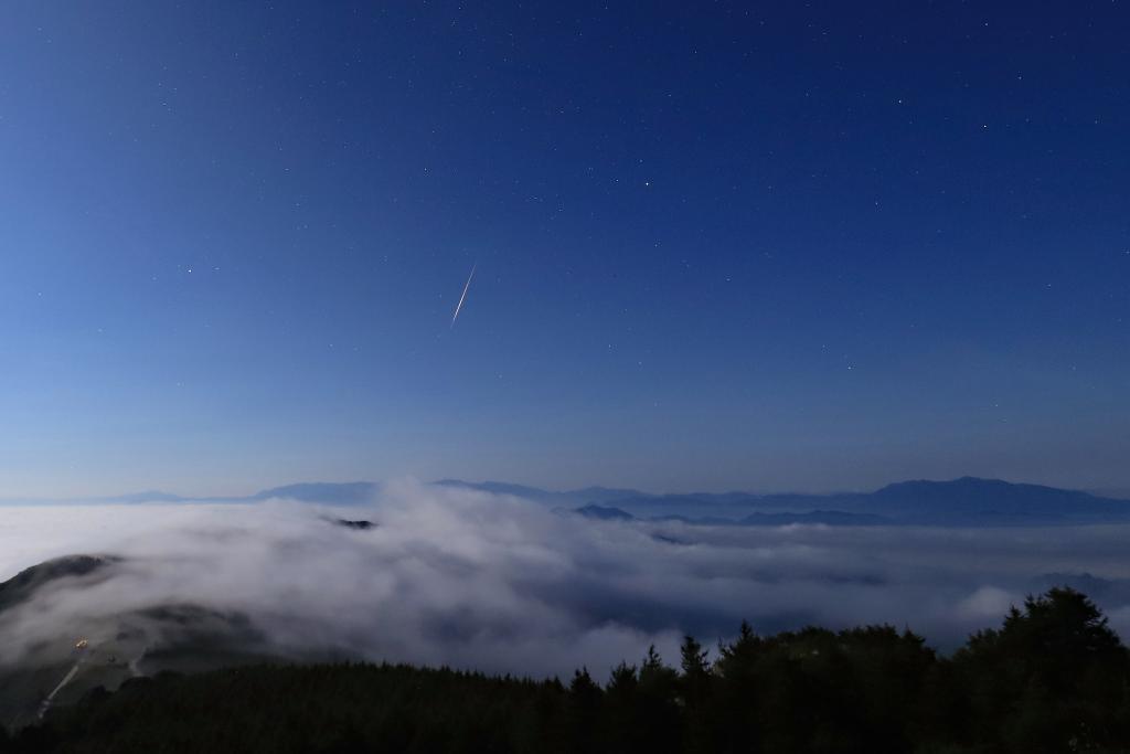 星空摄影师王俊峰2022年8月13日在北京房山白草畔风景区拍摄的英仙座流星雨。(星联CSVA供图)
