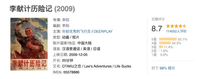 导演李阳在十几年前通过一支短片《李献计历险记》在影视圈小范围封神了一阵,部分网友盛赞这是“2009年最牛的国产动画片”。