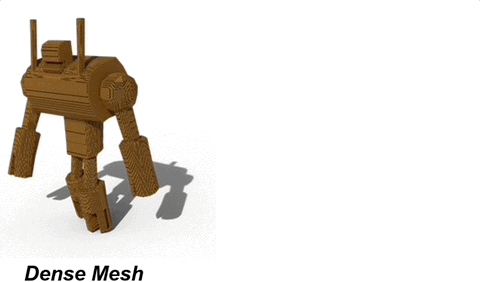 团队表示,所有之前方法,例如Marching Cubes和Get3D,生成的Mesh都是面片非常稠密的Mesh,面片数往往是人造Mesh的数百倍,几乎不可能应用于游戏,电影等实际3D工业。