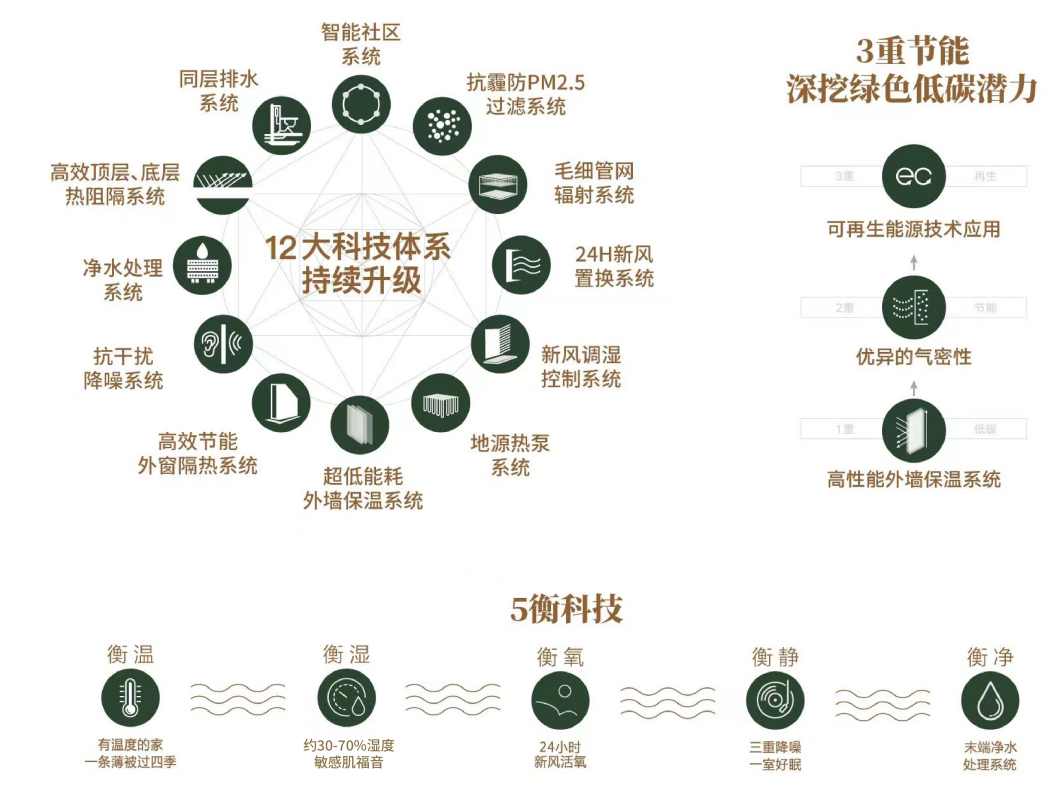 在金茂府,维持约30-70%湿度的衡湿状态。新风系统通过双冷源除湿、湿膜加湿,高效控制新风湿度,使室内湿度达到人体舒适程度。