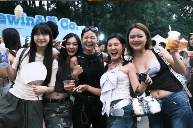 其实不用想这个问题,来到现场你就会了。来喝一杯,果汁饮料啤酒咖啡都可以;也可以来遛娃,或者遛狗;可以进行时尚人物大赏,数数有多少种发色,多少造型各异的帽子,多少种不同地市的口音;可以来玩浆板、做瑜伽;可以来听音乐,跟着舞台下的人群“开火车”,或者什么都不干,就来“take a summer break”,享受一下没有班味的周末。