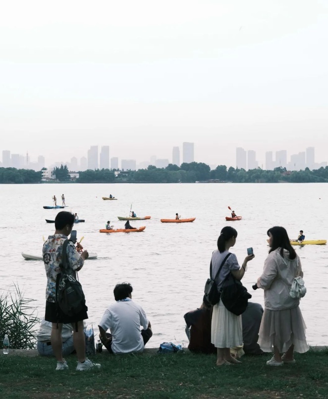 在社交平台上,北京、广州、成都、长沙等地的网友提前半个月就开始询问,“想去武汉跳东湖,有一起去的搭子吗?”别问有没有搭子,来到现场,大家互为搭子,绝对不扫兴。
