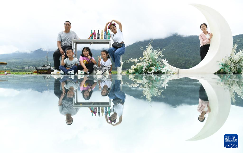 8月11日,人们在云南省腾冲市北海湿地公园游玩。