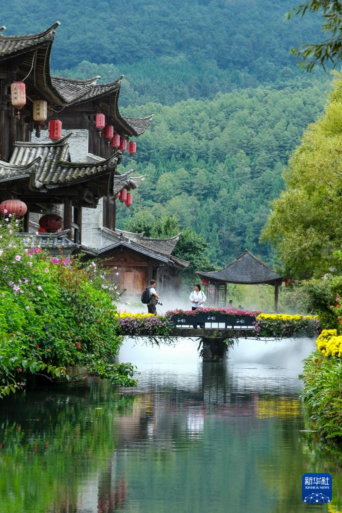 8月11日,人们在云南省腾冲市和顺古镇游玩。