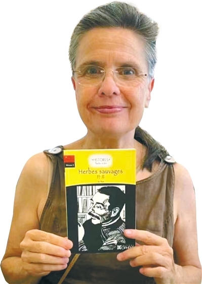 这次柳烟带了两本来中国,准备分别赠予北京鲁迅博物馆和老舍纪念馆:第一本介绍鲁迅,书名是《野草》;第二本介绍老舍,书名是《我热爱北京》,去年一出版就获得了法国中国书店读者最喜欢的图书奖。柳烟说,选择老舍是因为“他喜欢北京,我也喜欢北京”。这两本书同属于“好读的故事”丛书,体例大致相同:先介绍作家生平,之后是作品介绍,再后是原作和阅读理解。翻开书,文本右页为原作,左页为词汇注释,注释都用简单的中文,柳烟希望以此培养学生们的中文思考能力。