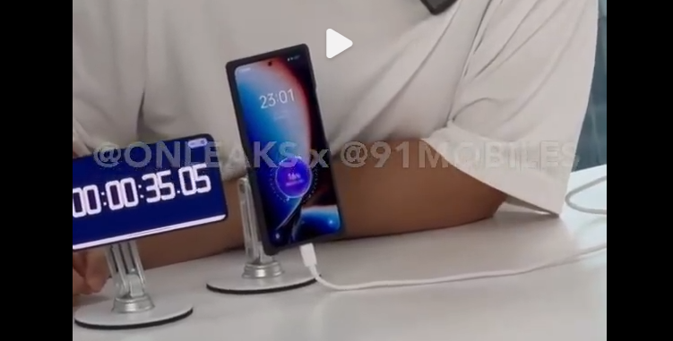 而在真我官方的宣传视频中,出境手机从10:00开始充电,10:02手机电量为55%,10:03电量达到87%,在10:04时,手机电量便达到了100%。也就是说5分钟内,手机电量充到了100%。