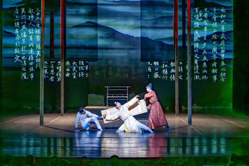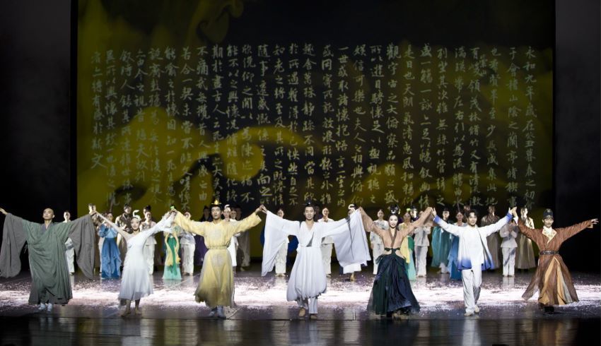 东方网记者熊芳雨8月12日报道:“永和九年,岁在癸丑,暮春之初,会于会稽山阴之兰亭,修禊事也。”1670年前,王羲之与友人在会稽山泼墨写下被誉为“天下第一行书”的《兰亭集序》,舞剧《永和九年》的创作灵感也来源于此。由上海歌剧院、上海久事文化传播有限公司联合出品的舞剧《永和九年》,是国内首部讲述书法作品传世历程的原创舞剧。8月9日 -11日 ,舞剧《永和九年》再度回沪,再次带领观众进入到王羲之的书法世界。