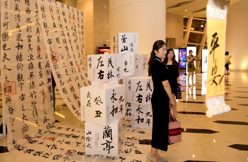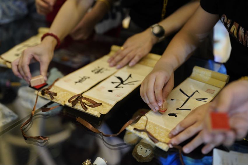 演出还未开始,剧场仿佛穿越回东晋那个古色古香的风雅世界,观众在现场还能 DIY 自己喜欢的古风卷轴,传统手工艺品更是让观众直呼“有趣”!不少观众早早前来打卡留念,甚至有观众兴奋地表示自己是来“二刷”“三刷”的。