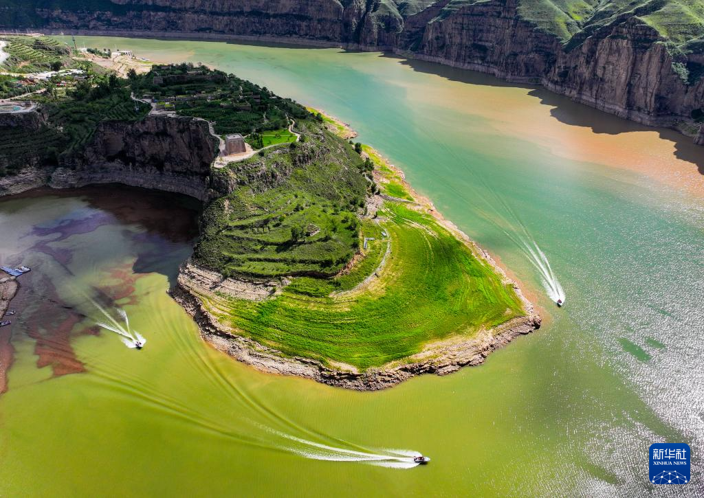 这是8月12日拍摄的黄河老牛湾风光(无人机照片)。