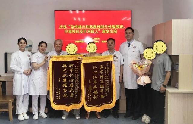 ▲出院前,患者及家属送上锦旗向湖南省人民医院肝胆六病区团队表达由衷的感谢。