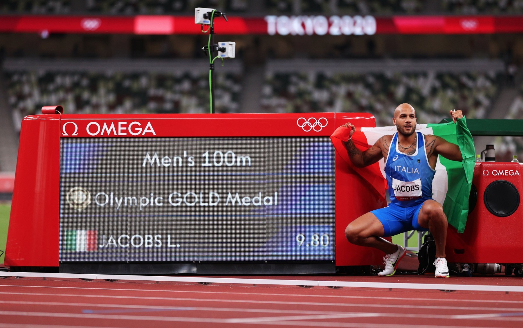 意大利在田径项目获得了24枚金牌,最大的突破在东京奥运会,意大利选手雅各布斯以9.80的成绩摘得男子100米金牌,并刷新欧洲纪录,他也是有史以来第一位进入奥运会百米飞人大战决赛的意大利选手。之后,雅各布斯又帮助意大利摘得男子4x100接力金牌,同样创造意大利的历史。在中北美称霸的短跑接力项目,也只有英国、德国、苏联、意大利打破过垄断。