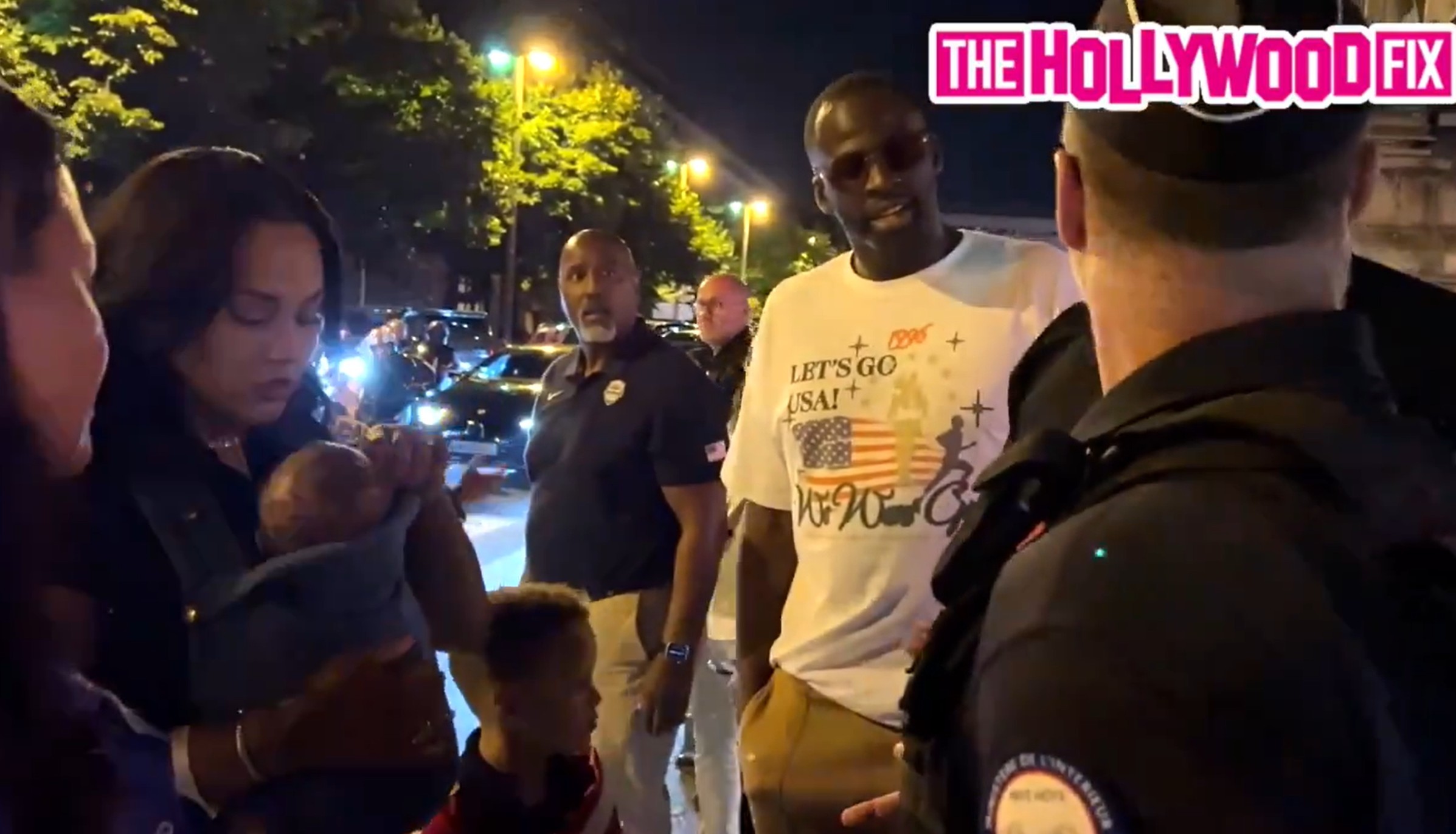 在关于过马路问题的争论当中,有警察不小心打到了阿耶莎怀里库里小儿子的头,这引发了库里家人的恐惧和不满,进一步激化了矛盾。随后格林出面指责了法国警方。