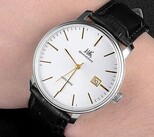 表盘非常干净,除了指针、数字、日期,没有其他修饰,主打一个简约经典,不会过时。