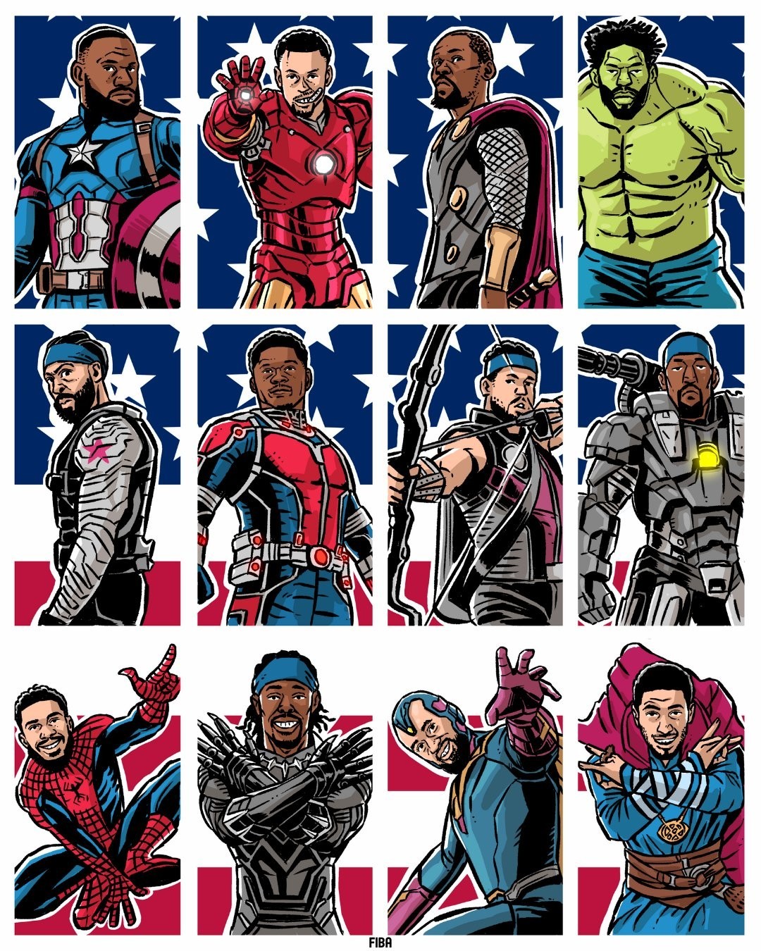 北京时间8月13日,FIBA官方在社交媒体晒出了一张美国男篮球员的漫威角色合照。