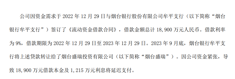 公告称,公司正在积极与济南农商行沟通协商,初步达成借款展期续贷意向,现正在进一步沟通和协商相关细节、方案。