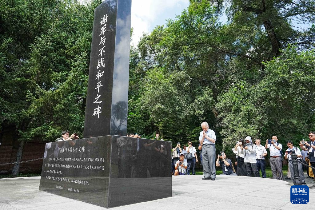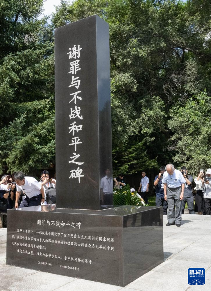 8月13日,侵华日军第七三一部队“少年队”原队员清水英男在侵华日军第七三一部队旧址“谢罪与不战和平之碑”前忏悔谢罪。