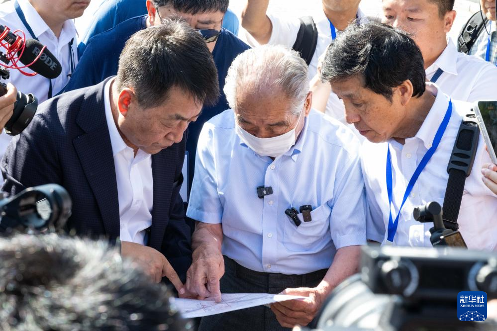8月13日,侵华日军第七三一部队“少年队”原队员清水英男(中)在侵华日军第七三一部队旧址指认侵华日军细菌战罪行。