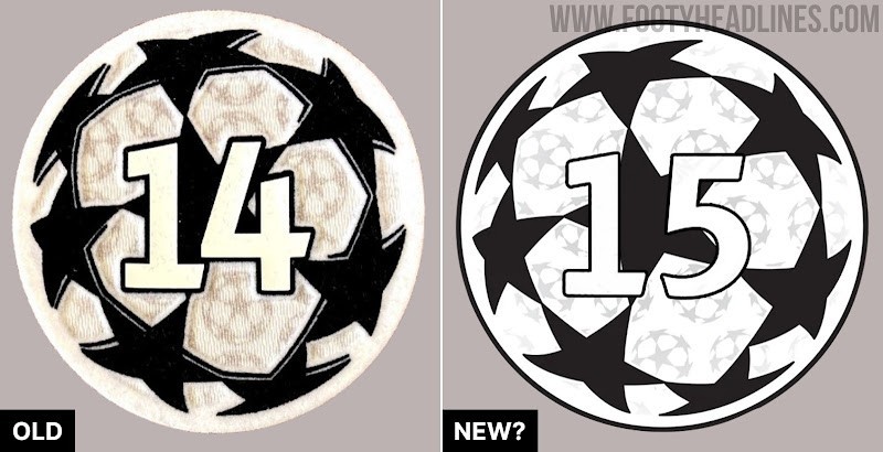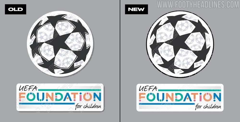 欧洲冠军联赛臂章外增加了黑色边框,以提高徽章的可见度,并与各种球衣颜色形成了鲜明对比。此外,星星的3D效果已被删除。