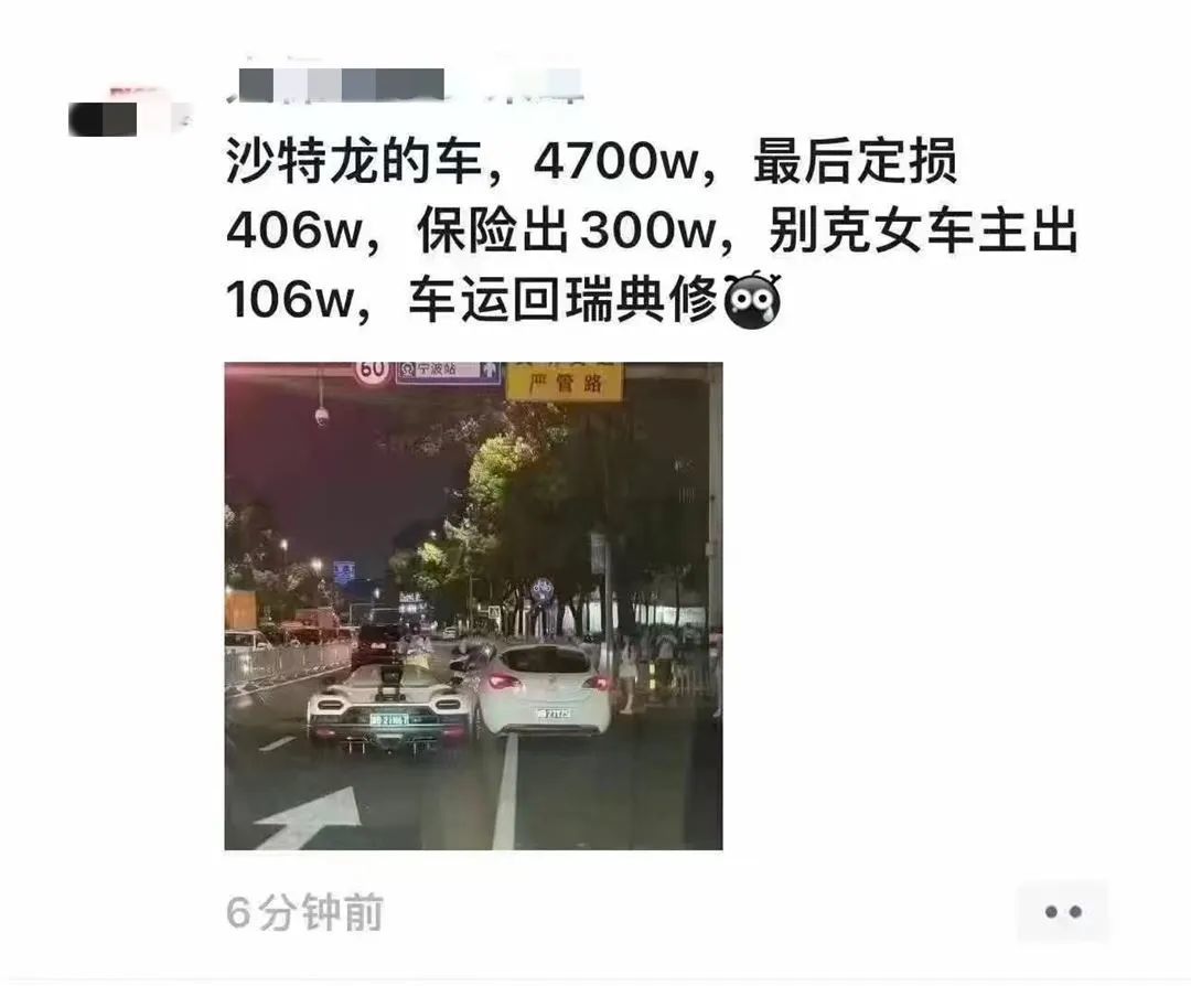 “豪车交通事故”的案例这几年确实不算少见,但像科尼赛克Agera这样保有量很少的千万神车,普遍一年当中绝大多数时间都停放在车库里,路上能见到的概率非常低。事出之后,一张事故责任、保险、定损价格的图片被疯传。