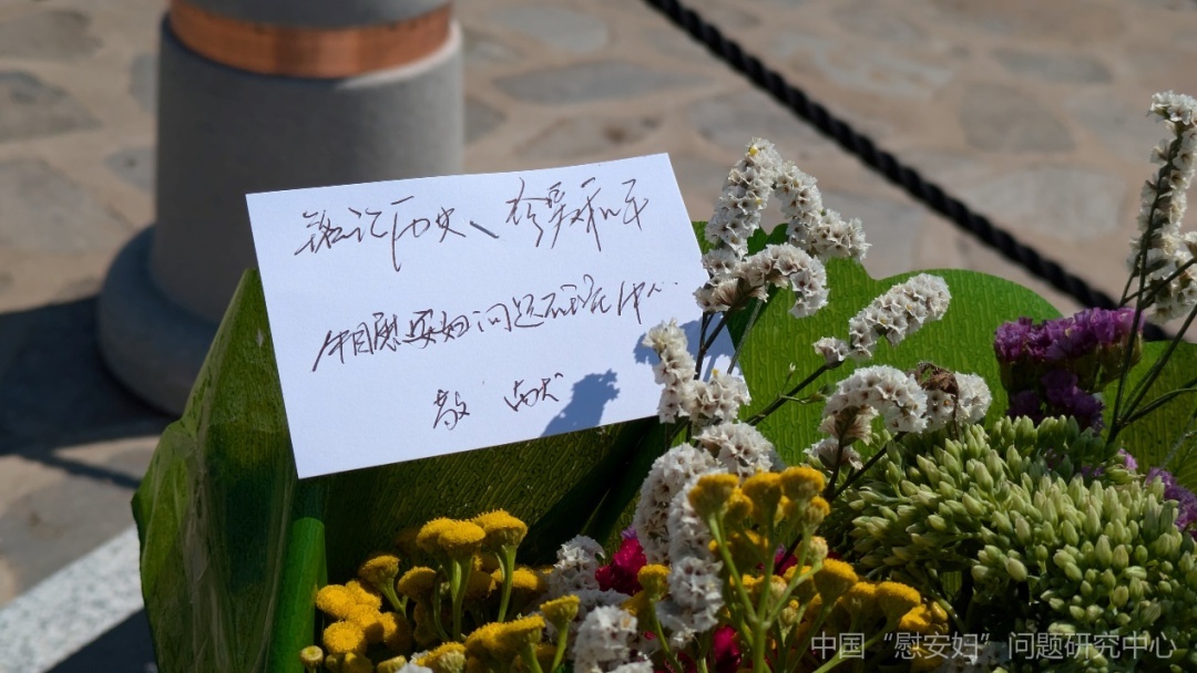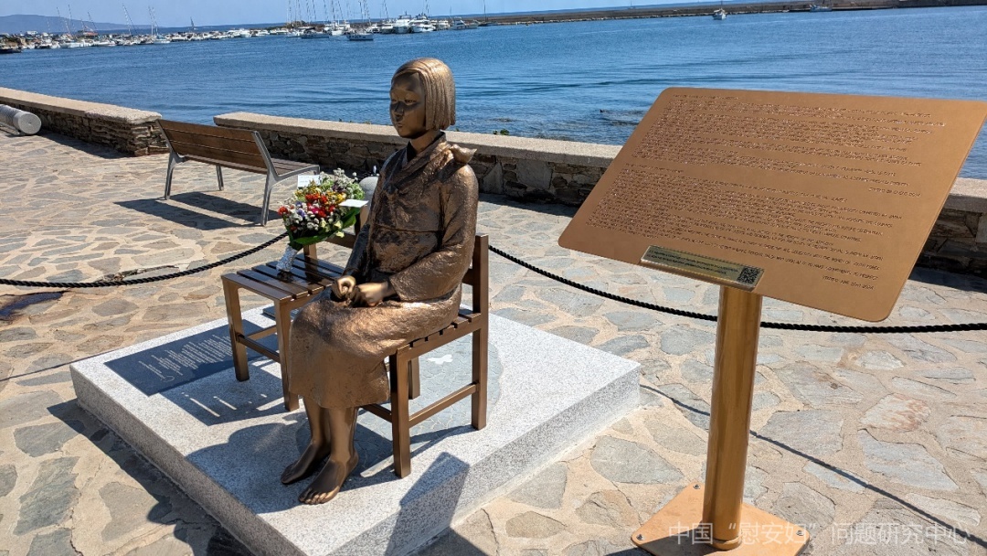 2024年8月9日,中国“慰安妇”问题研究中心代表蒋杰老师于意大利萨丁岛斯廷蒂诺市向少女像敬献花束