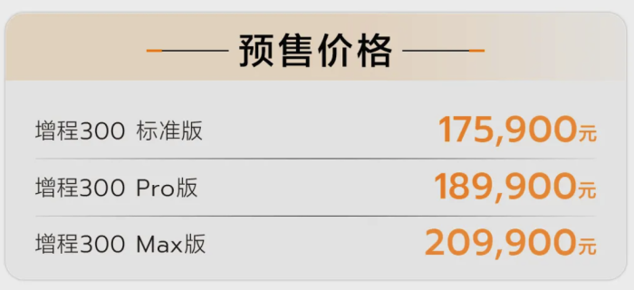 在价格方面,哪吒前期推出的三款增程版本售价分别为17.59万元、18.99万元和20.99万元。其中,17.59万元为增程300标准版,18.99万元为增程300 Pro版,20.99万元为增程300 Max版;而纯电版本的售价为14.98万元起。
