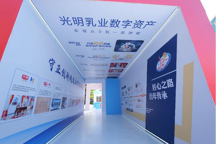 走进位于上海展览中心一楼的光明乳业主展位,仿佛走进一本巨大的书,翻开了时光的扉页,穿越进光明乳业的时光长廊。在这条长廊中,有让人倍感亲切的光明奶箱,有互动拍照打卡点,还能领取专属明信片,以此承载千家万户记忆中温暖时光。展位还记录了光明乳业的匠心之路与百年传承,展现了世界级智慧工厂和数字资产的高光时刻,体现了百年乳企对卓越品质的坚持与创新。