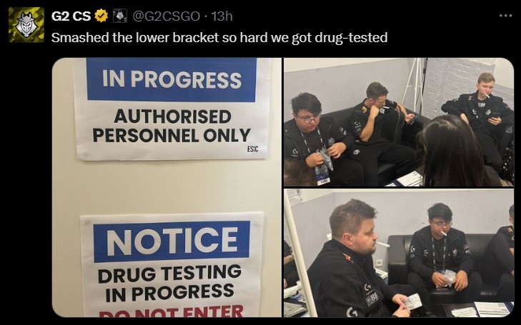 G2在败者组打出三连胜,状态火热,在获胜的6张地图中三次只让对手拿到1分!G2官方社媒表示:鉴于在败者组的无解表现,我们接受了药检。