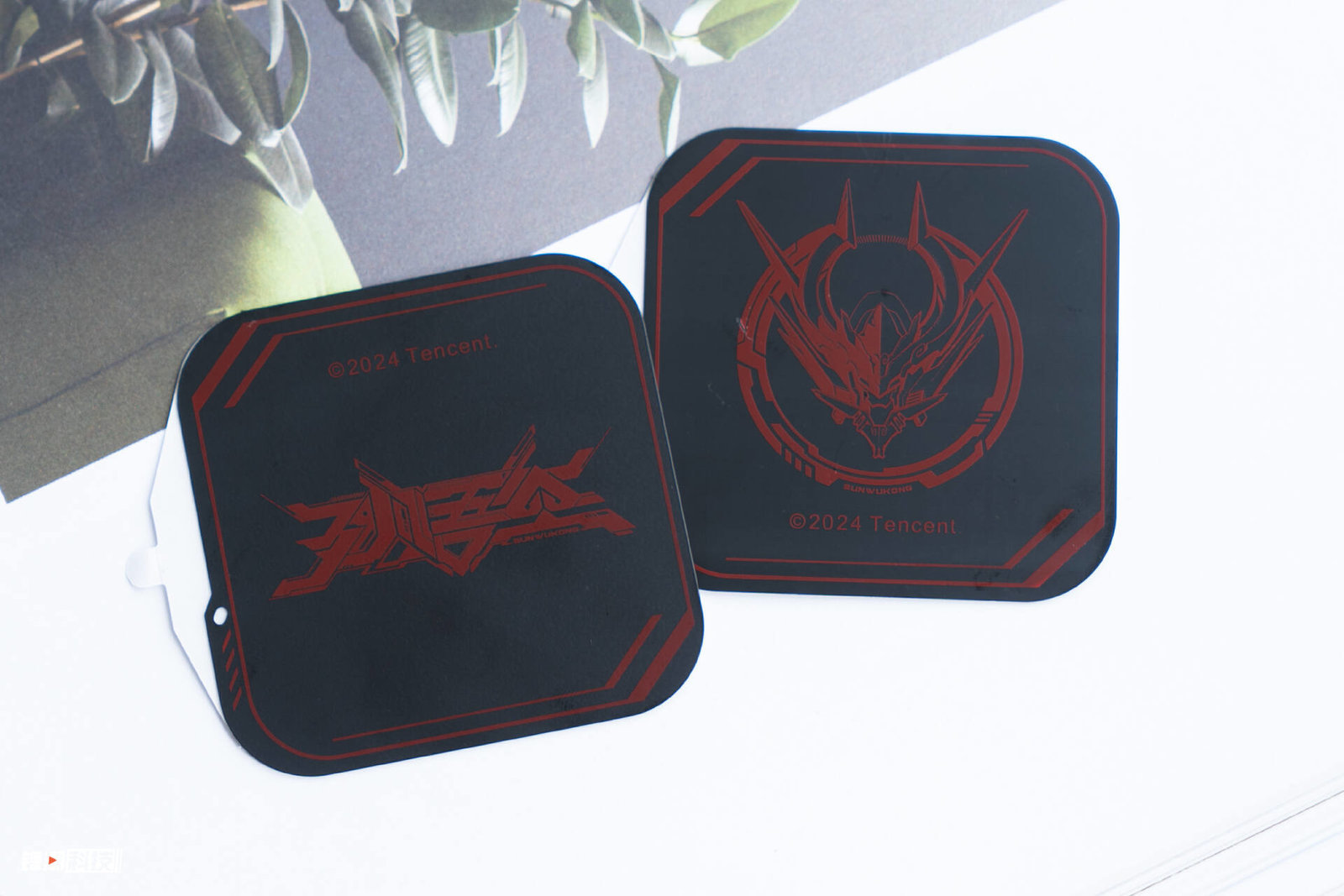 除了本体有多样的定制元素,红魔散热器 5 Pro 王者荣耀正版授权孙悟空合作款还在配件上也下了功夫,足足给了两张定制引磁贴,并且分别印着“孙悟空”的字样和机甲的头像,看起来也很有定制的味道。