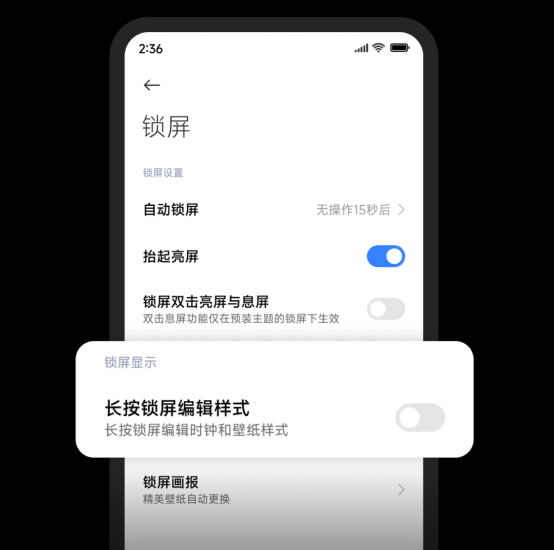 第二项更新,新增「长按锁屏编辑样式」开关。