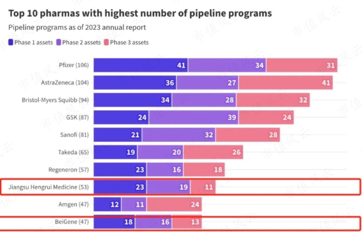 仅在2023年,中国1类新药的IND受理品种就有1241个,同比增长31.7%。恒瑞、百济神州这样的公司,在管线数量上甚至已经位列全球前十。