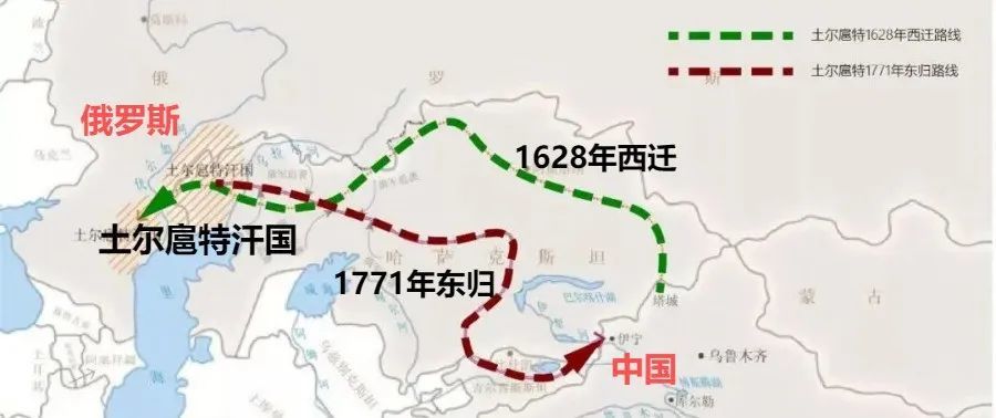 与此同时,取代明朝的清朝在1758年彻底消灭了土尔扈特部的仇人——准噶尔部。面对着沙俄的压迫,土尔扈特部上层萌生了东迁回祖国的想法。