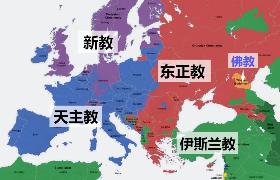 ▲欧洲宗教分布图