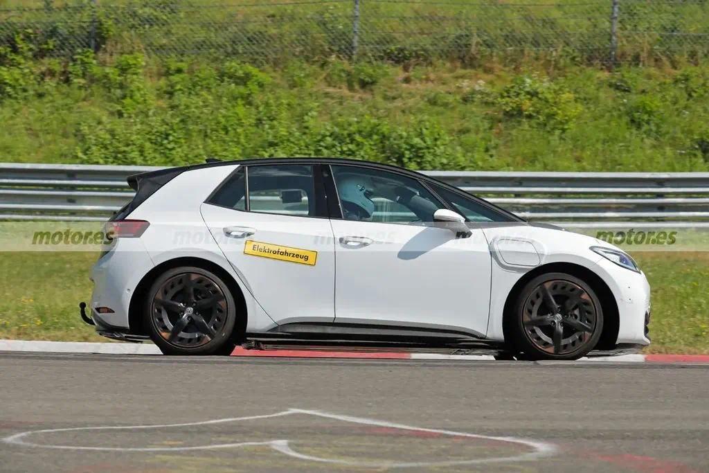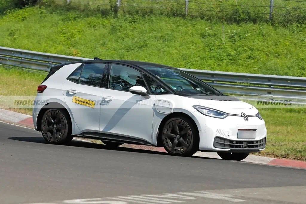 据悉,大众ID.2 GTI作为ID.2系列的高性能版本,正在纽博格林赛道上进行紧张的测试。此次曝光的骡车主要用于开发前期对底盘进行测试和验证,虽然其外观套用了大众ID.3的外壳,但车身和后悬明显更短,显示出其独特的运动化设计。