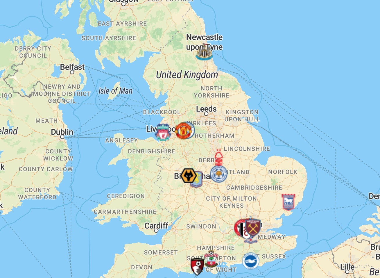 2024-25赛季英超联赛今夜开战。新赛季的20支球队里,纽卡斯尔联的地理位置最靠北。