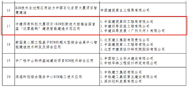 近日,由中国施工企业管理协会主办的第五届工程建设行业BIM大赛获奖名单公布,中建四局安装工程有限公司的参赛作品《中建四局科创大厦项目-BIM创新技术助推全国首座“近零能耗”建筑智能建造示范应用》获民用建筑工程类别一等奖!