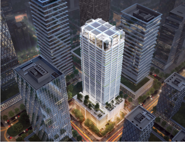 项目全面贯彻绿色发展理念,采用了一系列先进技术,包括高效制冷机房、空气源热泵、新风全热回收等,全面提升能源系统效率,实现建筑能源消耗的显著降低,综合节能61.00%、可再生能源利用率25.36%,满足近零能耗建筑标准要求,拟成为全国首座超150米近零能耗建筑。