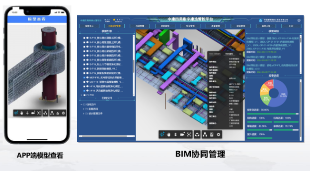 BIM协同管理板块将数据互联互通,实现精细化管理。将土建、机电、装修等各专业的BIM模型轻量化上传智能建造平台,可实现一站式BIM模型查阅,模型精度可细化至每根钢筋、每根管线,助力按模施工,加快了建造进程。